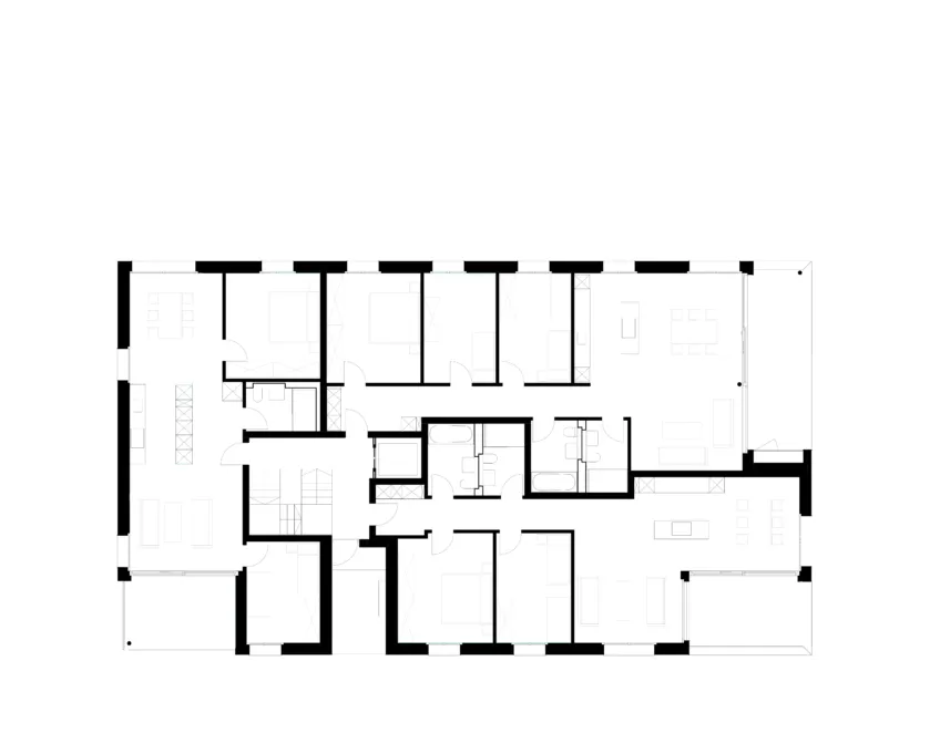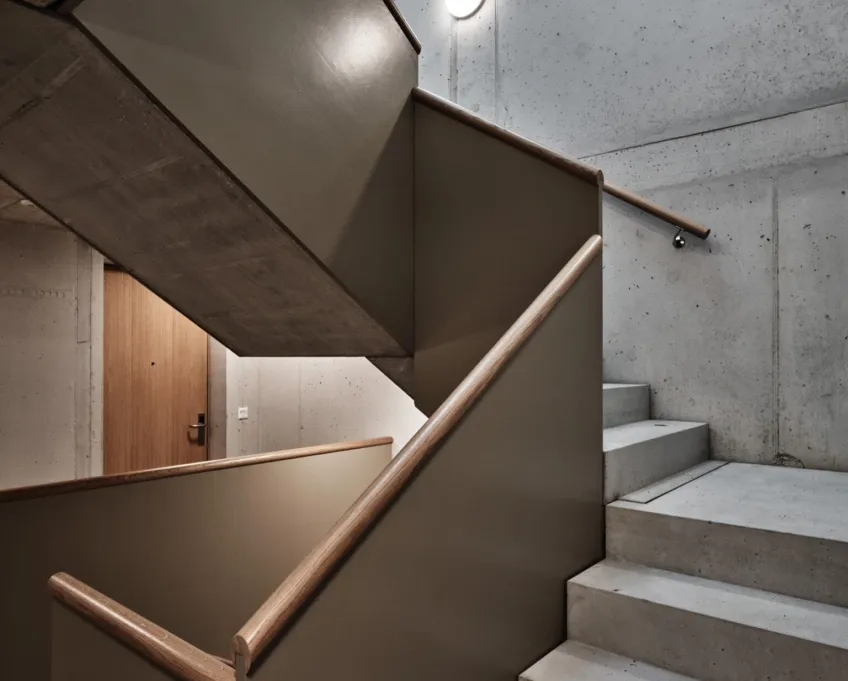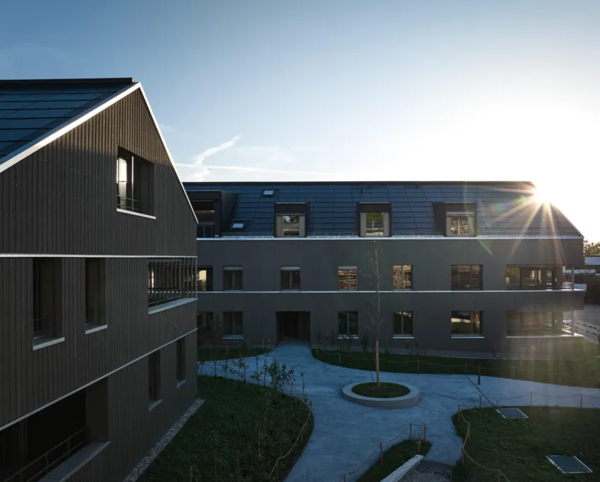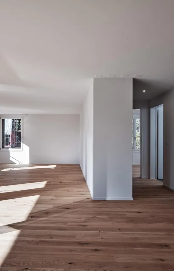 Das angrenzende Mehrfamilienhaus beherbergt neun Wohnungen, darunter zahlreiche 3,5- und 4,5-Zimmer-Wohnungen. Diese erstrecken sich über drei Geschosse und bieten den Bewohnern und Bewohnerinnen ein Höchstmass an Privatsphäre und Raum für Entfaltung. Die Wohnungen sind so gestaltet, dass sie den Ansprüchen einer modernen Familie gerecht werden, die nach einem komfortablen Lebensraum suchen. Der Zugang zu den Wohnungen ist bequem über Aufzüge möglich, die direkt vom unterirdischen Parkhaus aus erreichbar sind. Diese praktische Lösung garantiert den Bewohnern nicht nur eine stressfreie Ankunft nach einem langen Tag, sondern verleiht den Gebäuden auch zusätzliche Funktionalität.