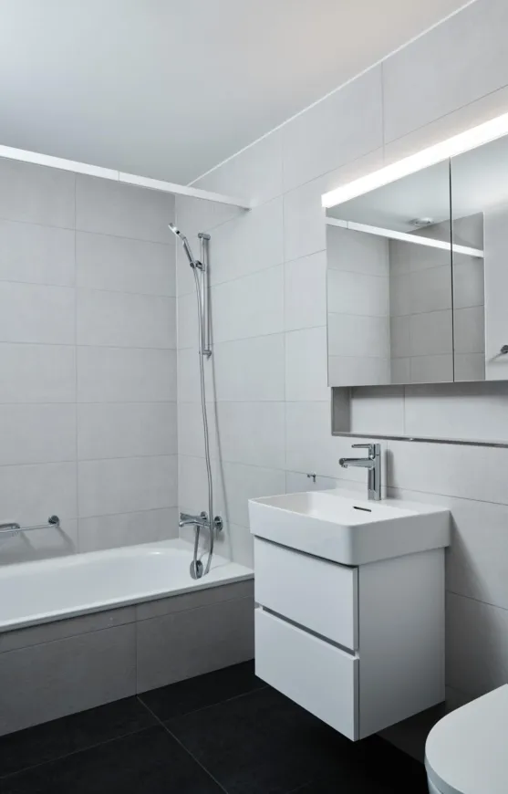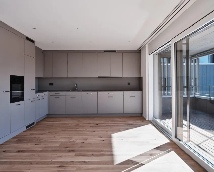 Die Neugestaltung des Rebgut-Areals zeichnet sich nicht nur durch funktionale Aspekte aus, sondern auch durch einen ausgeprägten Fokus auf Design. Besonders die Küchen sind ein Highlight der Wohnungen: Sie sind schick und modern gestaltet und bieten eine scharfe, durchdachte Aufteilung, die sowohl ästhetisch als auch funktional ist. Hochwertige Materialien und erstklassige Geräte machen das Kochen zu einem wahren Vergnügen. Elegante Details und clevere Stauraumlösungen zeigen, dass hier an alles gedacht wurde, um den Alltag der Bewohner und Bewohnerinnen zu bereichern.