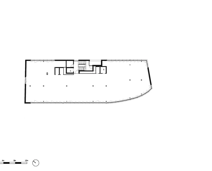 Das Gebäude verfügt über ein tragendes Stützenraster welches eine flexible Grundrissgestaltung zulässt. Der Ausbau wurde in einer Leichtbauweise ausgebaut.