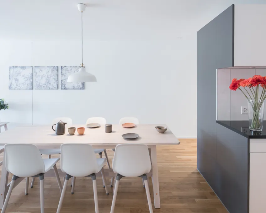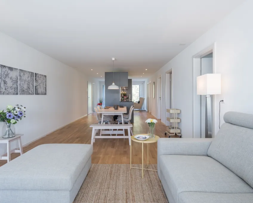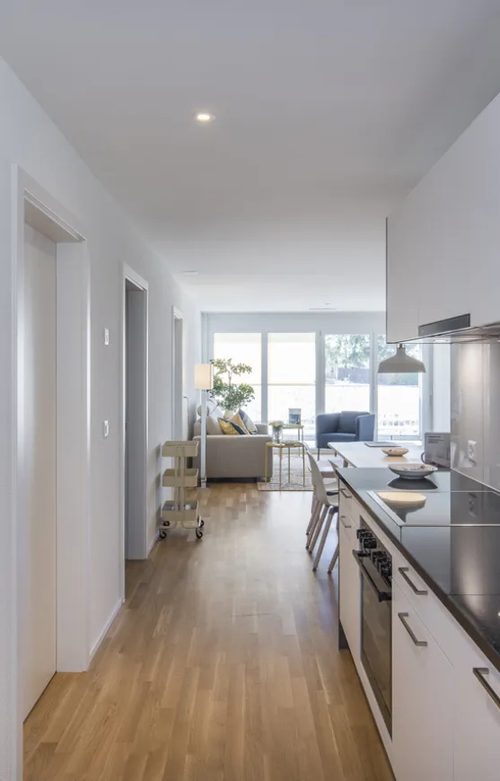 Die lichtdurchfluteten Wohnungen wurden so entworfen, dass sie optimale Lebensqualität bieten und sich harmonisch in die Umgebung einfügen. Jede Wohnung zeichnet sich durch ein offenes Raumkonzept aus, das eine helle und freundliche Atmosphäre schafft.