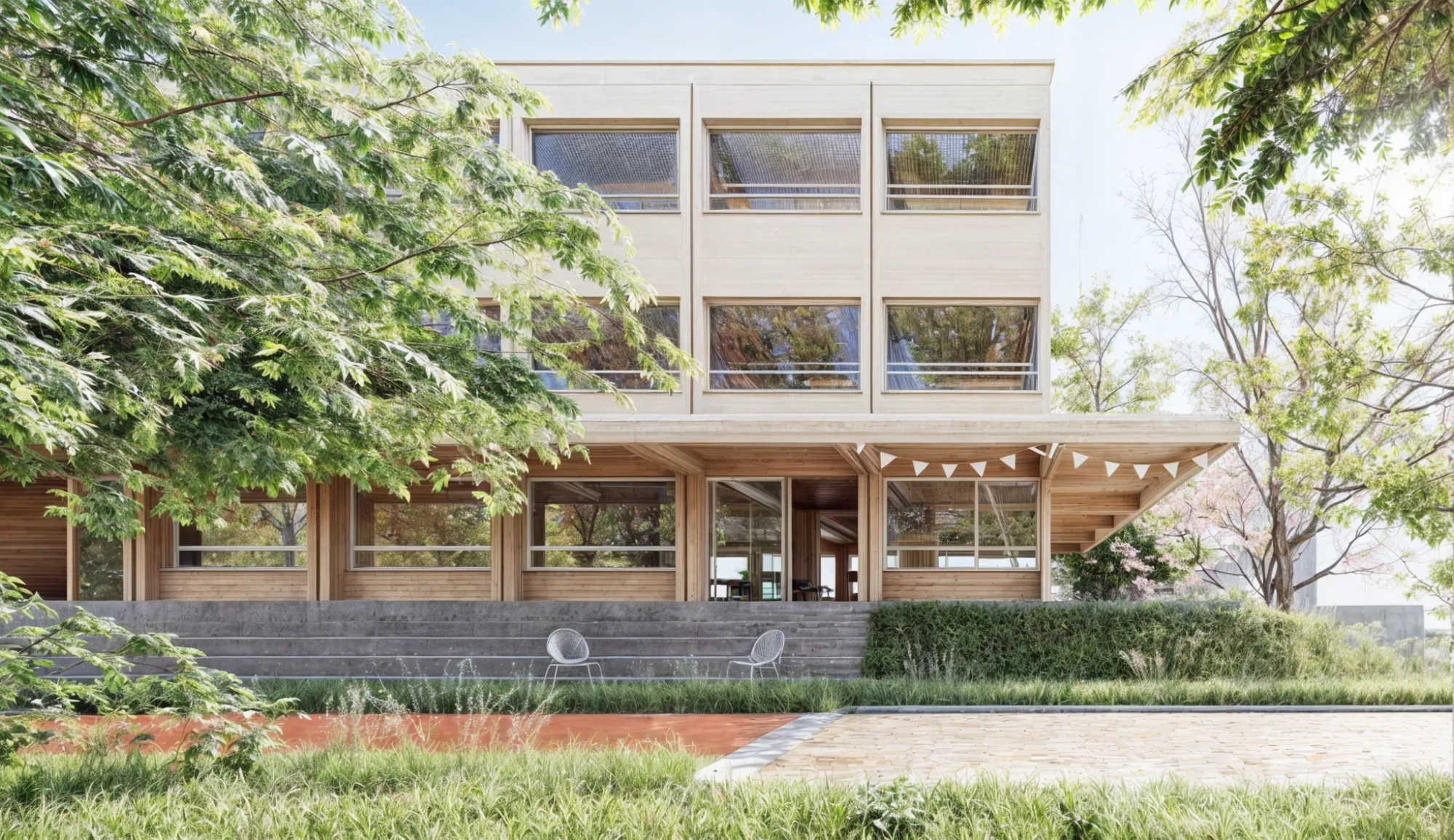 Eine weitere Option, den möglichen Bedarf an mehr Schulräumen zu decken, wäre der Bau eines zusätzlichen Gebäudes in ähnlichem Stil. Das Gebäude würde freistehend errichtet, und die Raumaufteilung könnte neu geplant werden.