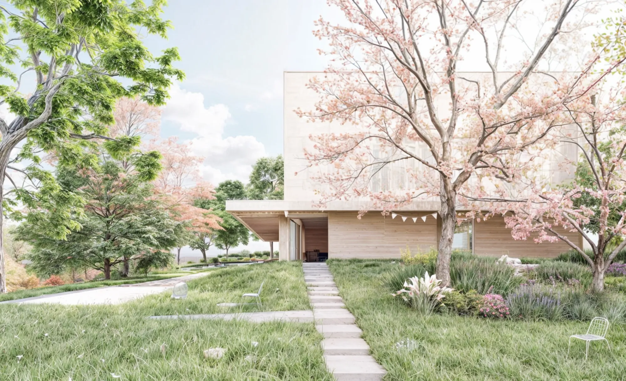 Die Gartengestaltung wird als optionaler Eingriff dargestellt, der den Grünkorridor Nord-Süd aufwertet. Das Grünraumkonzept unterstützt die architektonische Haltung des offenen Erdgeschosses. Zudem dient es als hochwertiger Freiraum mit Natur und Schatten.